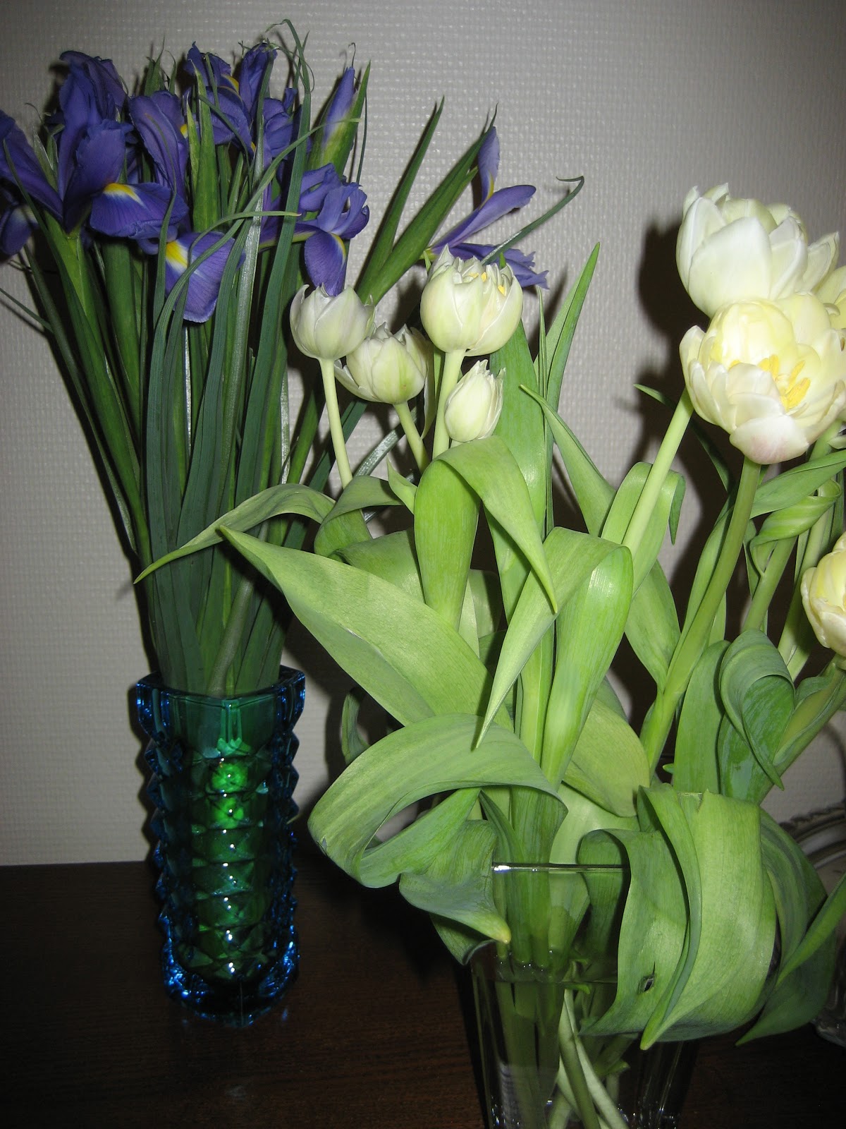1. Blomster er bare dødsbillig i Danmark ja. Den vasen er bare utrolig kul. Ha en fin ukeslutt på jobb:-)