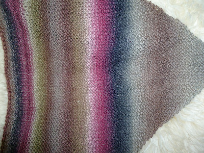 Et trekantsjal strikket etter eget hode, strikket av DROPS Delight.