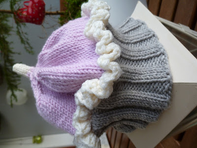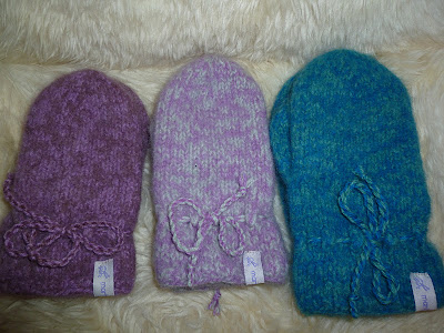 Først er par blå "goldfish mittens", gratis mønster på Ravelry. Som dere ser ble ene votten ble litt feil...... Men når tiden er kort og julen nærmer seg er det ikke tid for å rekke opp... Så da for man bare gå for at det er slik det skal være :) Det hører med at mottakeren sov med vottene på natt til 1. juledag, så da var det nok vellykket ;)