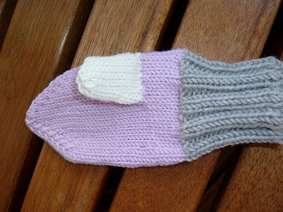Et par votter til, disse etter mønster fra pickles.no, vottene i Lekeplass-sett. Begge deler strikket i DROPS Merino ekstra fine.